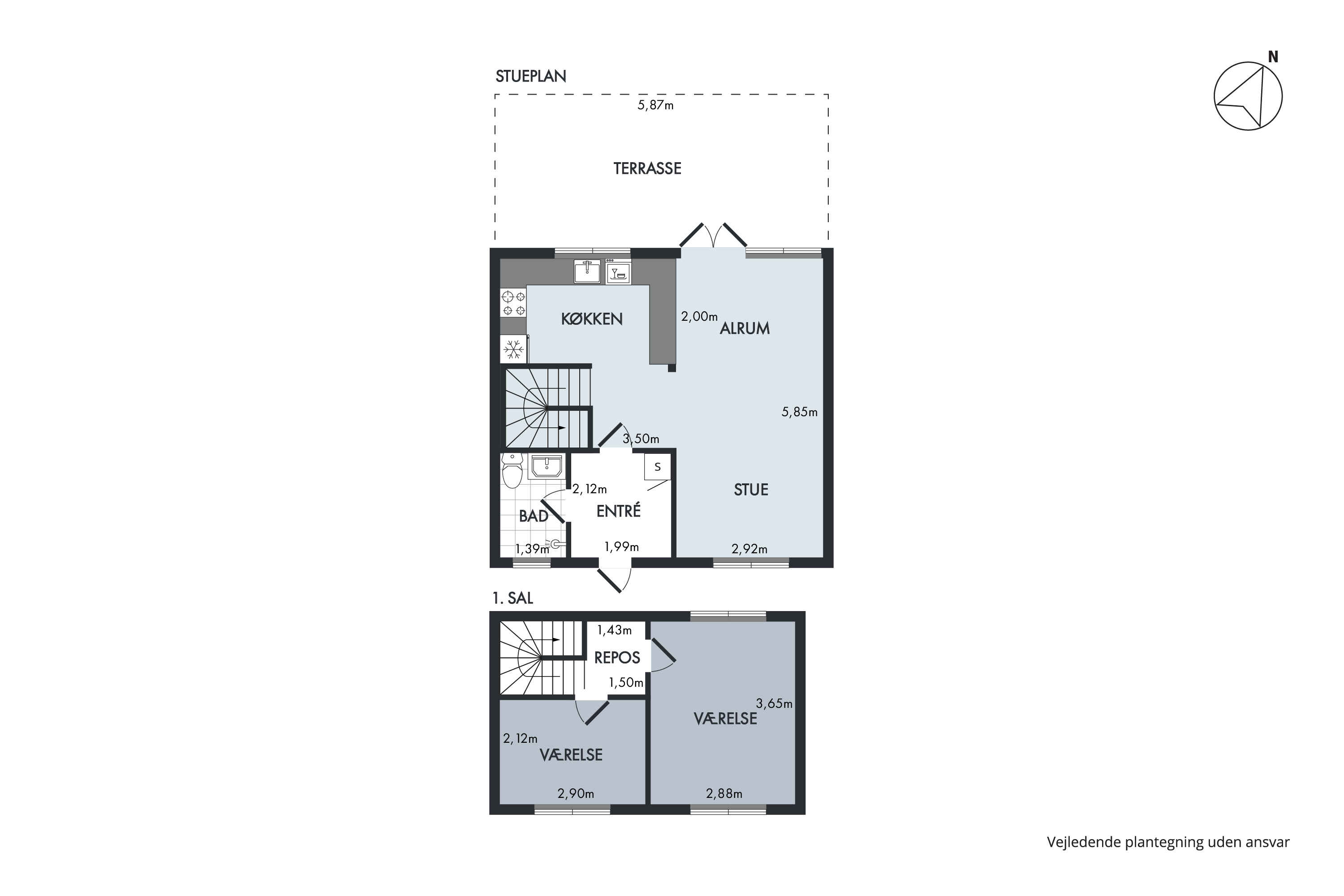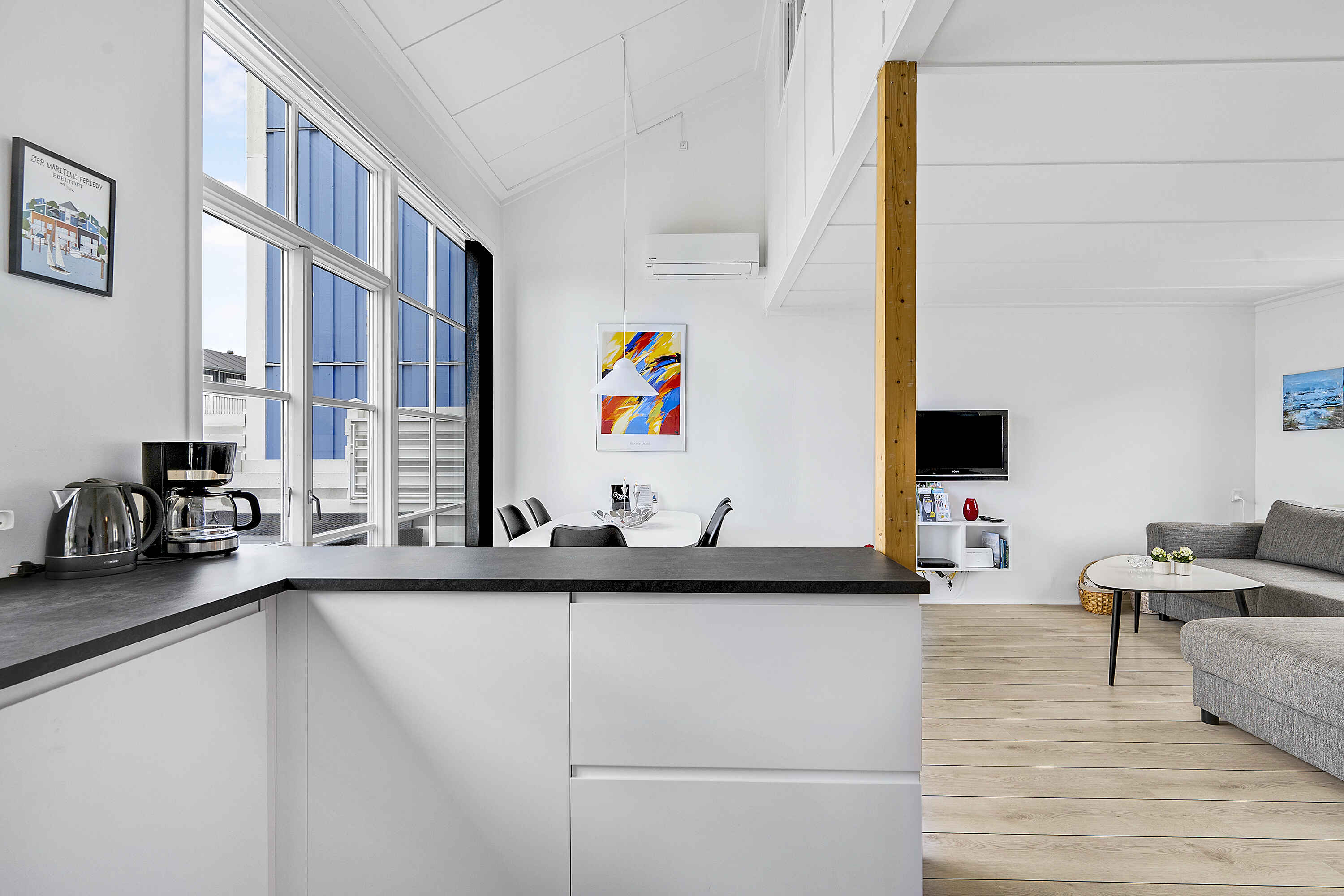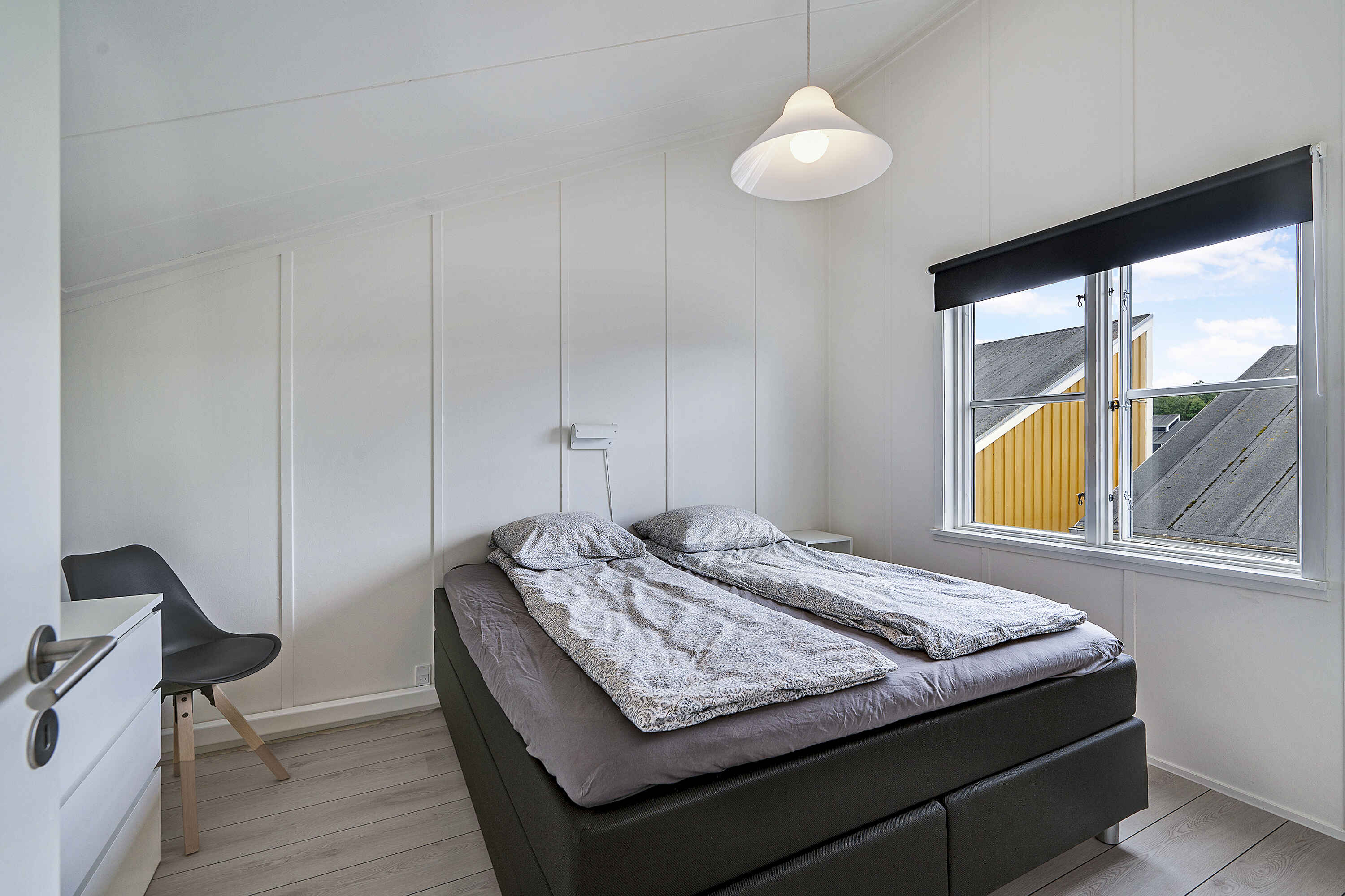 På første sal finder I master bedroom med dobbeltseng og skabe. Det mindre værelse har dobbeltseng og en hems. Det hele blev renoveret i 2021, så alt fremstår moderne og praktisk.