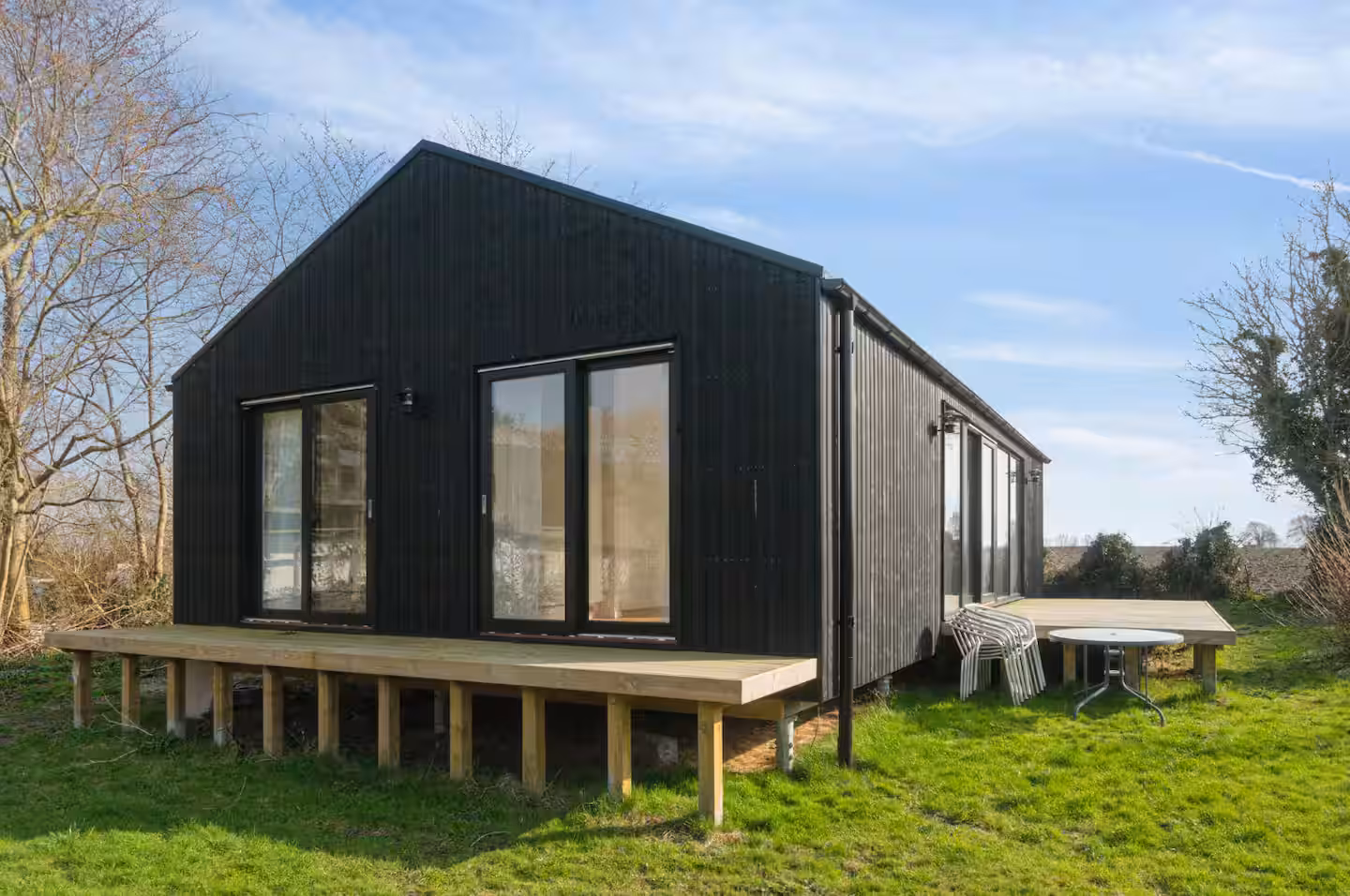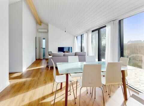 Opført i 2023, moderne træhus på 81 m² med 5 værelser, 1 badeværelse og 2 toiletrum. Indretning med ...