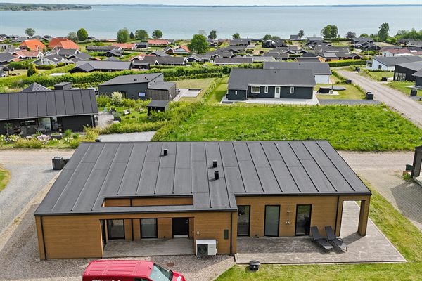 Med panoramaudsigt over vandet ligger dette nye sommerhus, bygget i 2022, i ferieområdet Grønninghov...